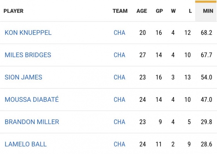更让人震惊的是,黄蜂最强的五人组——三球、克尼普尔、米勒、布里奇斯、迪亚巴特——在半个赛季已过的情况下,只在17场比赛出现过。